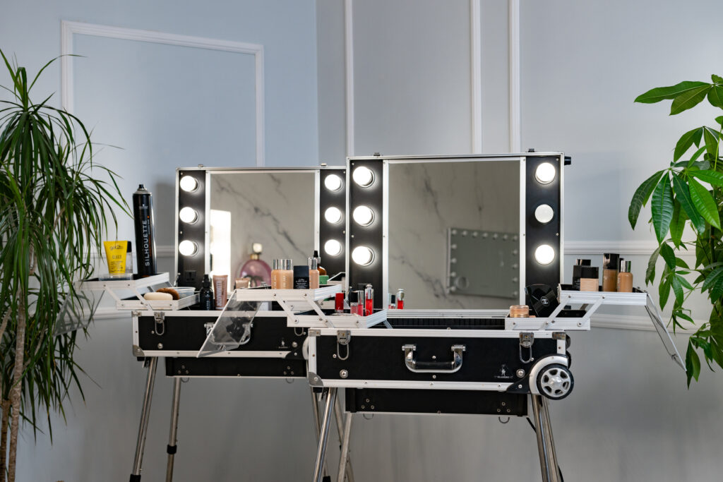 Oferujemy wynajem profesjo0nalnych luster charakteryzatorskich na eventy, śluby, sesje zdjęciowe oraz do przestrzeni przygotowań. Lustra zapewnia komfortowe miejsce do poprawek makijażu i fryzur oraz podnoszą prestiż wydarzenia. Istnieje możliwość wynajmu luster samodzielnie lub w pakiecie z obsługą wizażystek i stylistek fryzur.